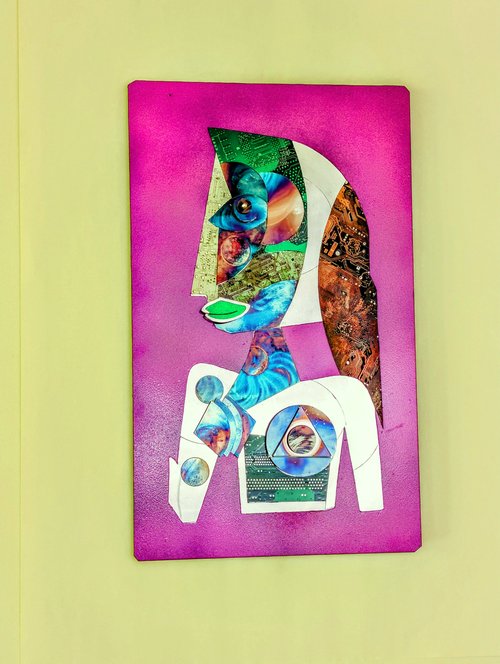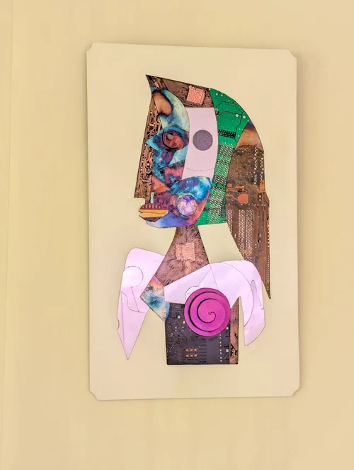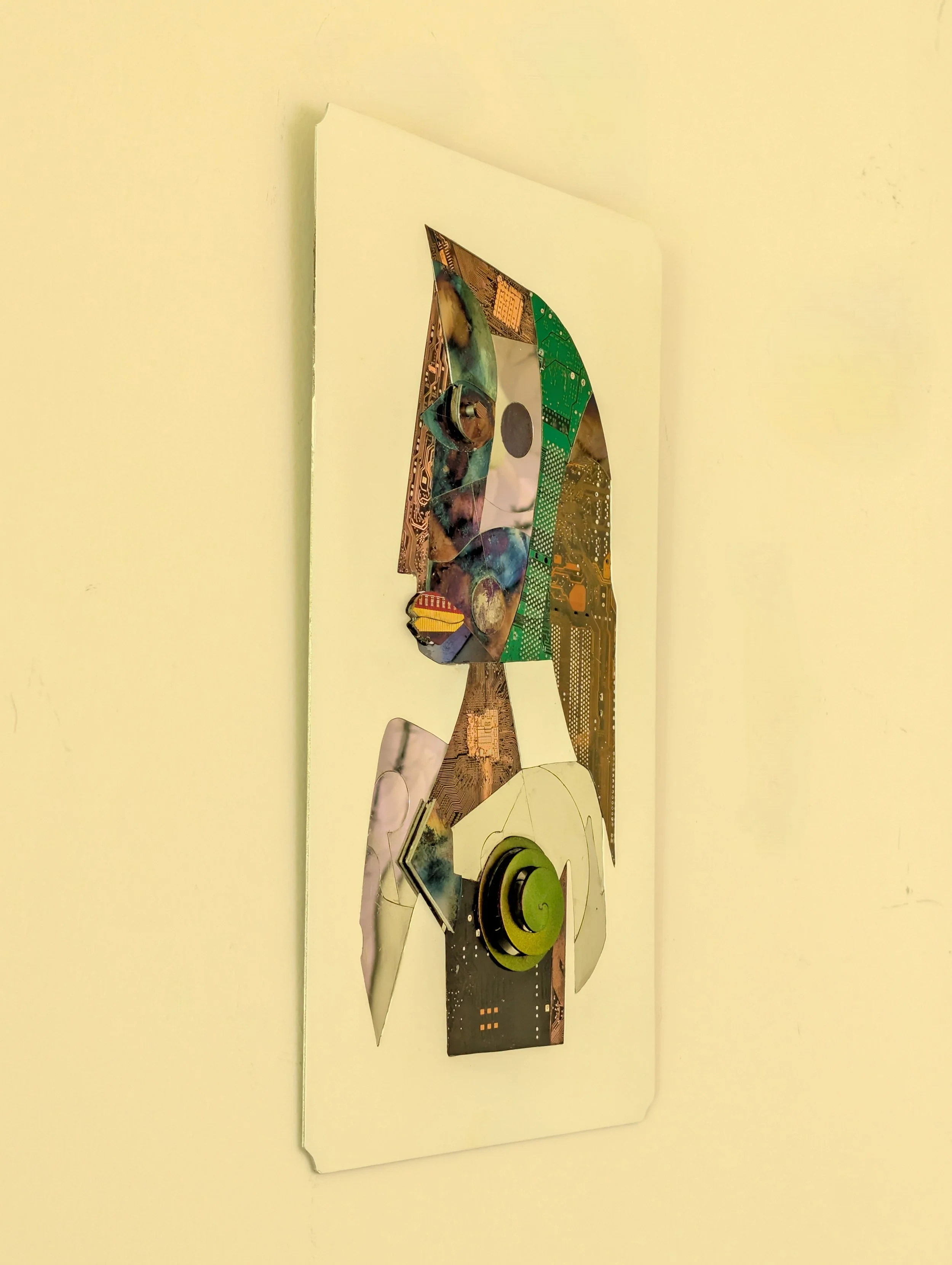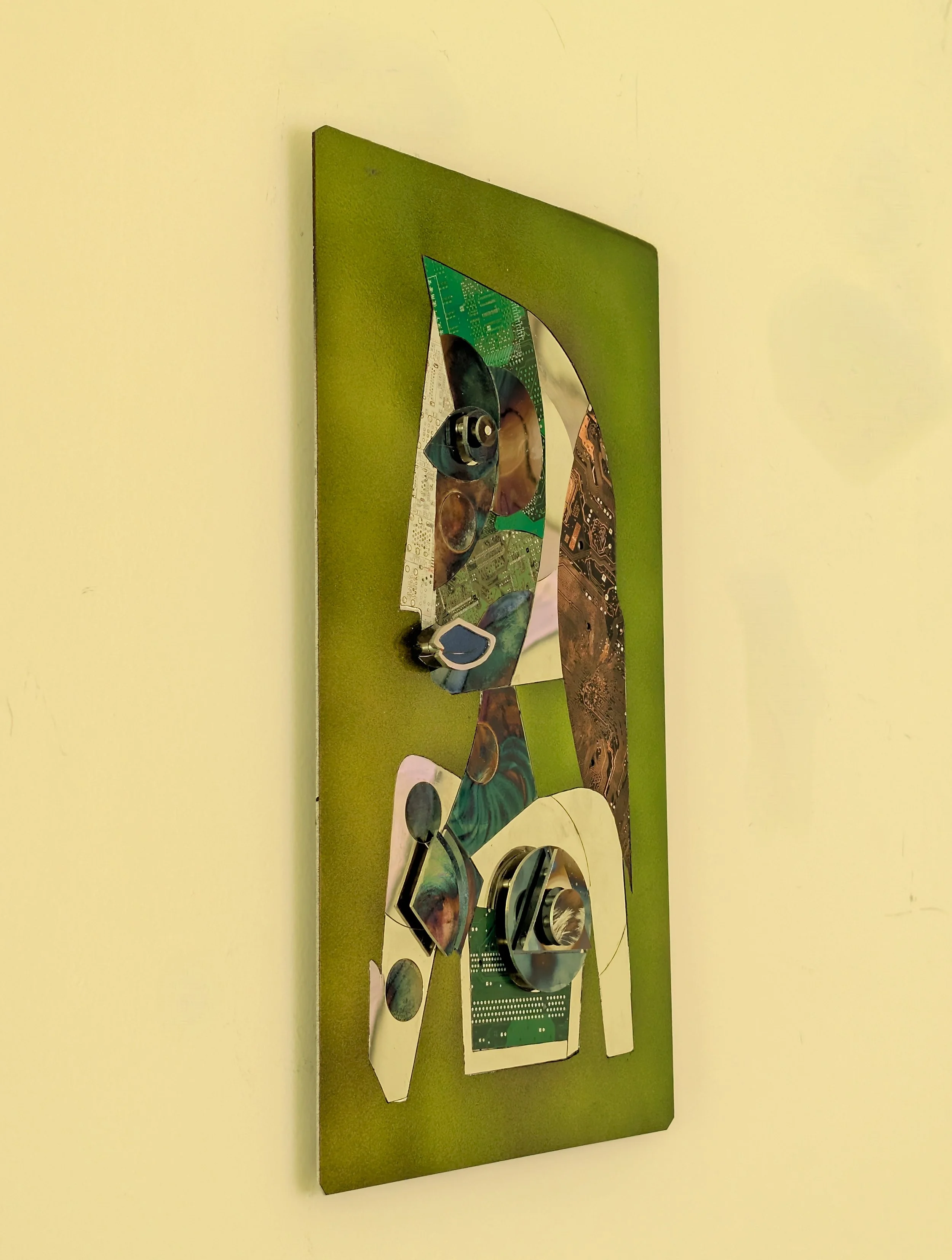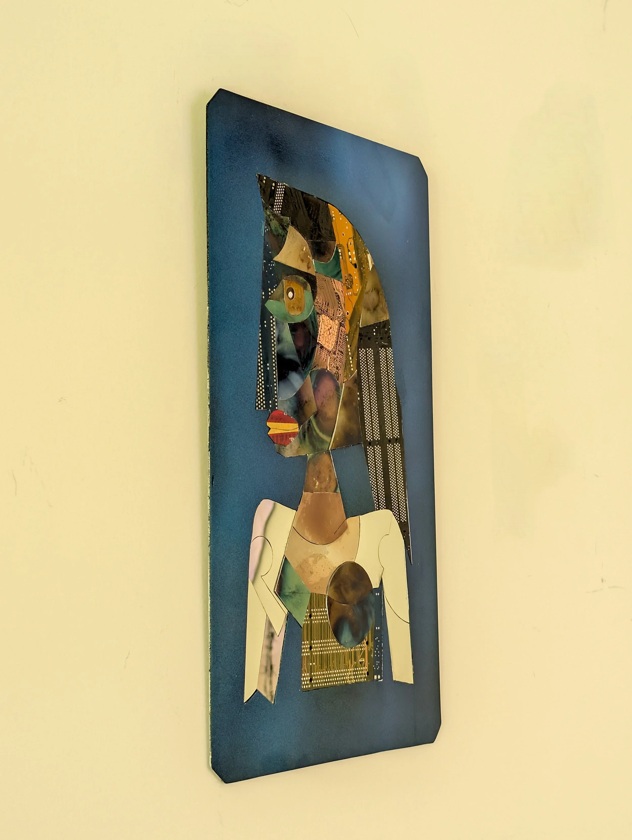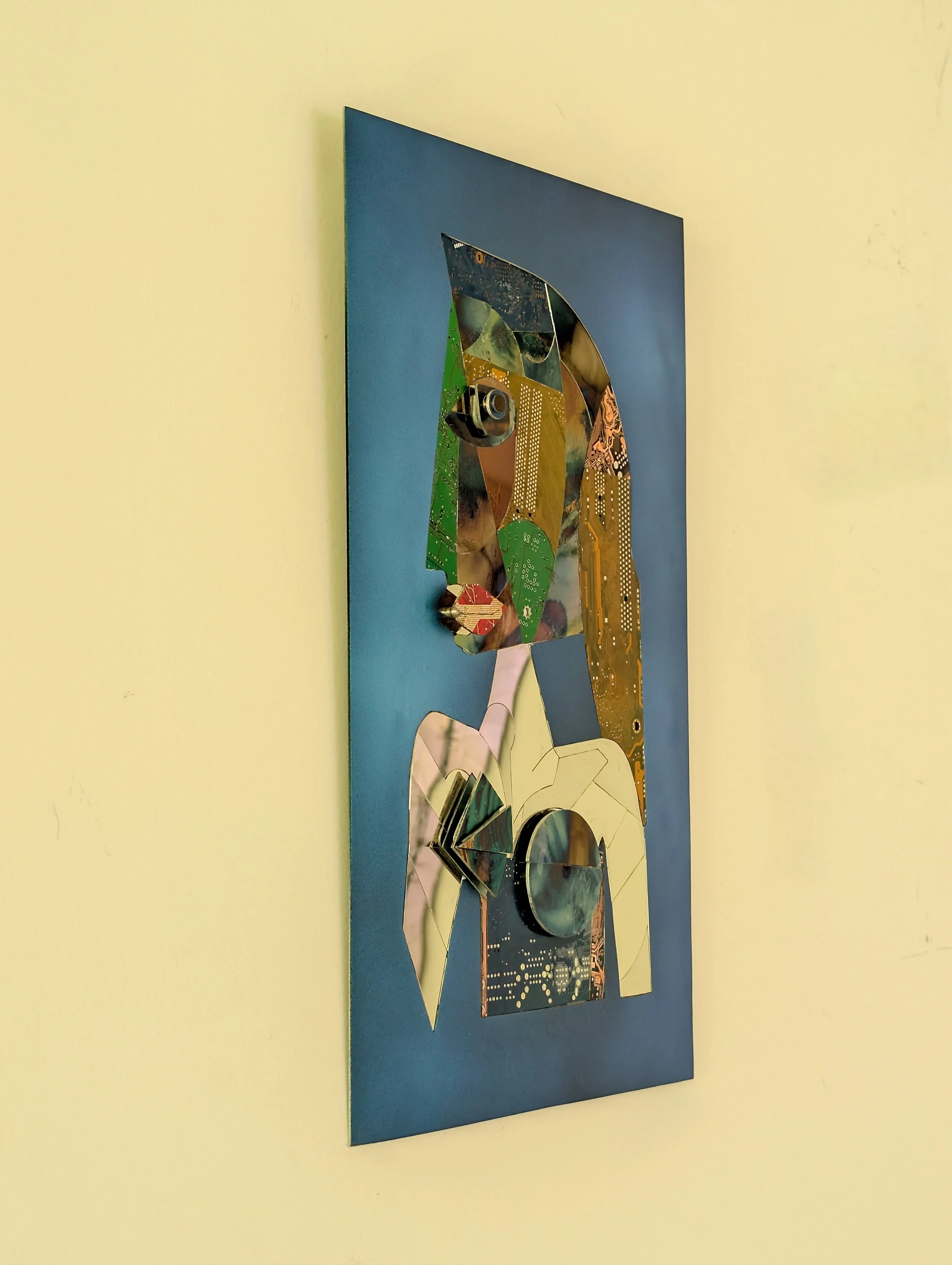 Built on a common outline, each of these four pieces contains a unique composition. As my first works in Cubism, they became the foundation for my later explorations of the style. They represent an effort to revisit cubist concepts using materials (computer parts, color shifting paint) and geometry (aperiodic tiles) that did not exist at the movement's inception.