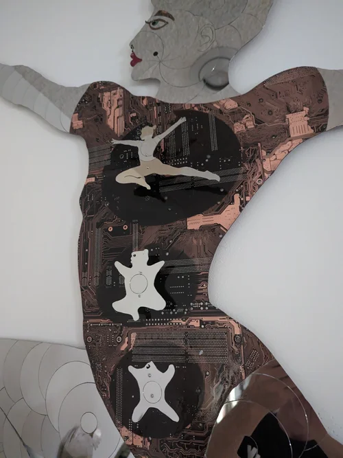 Self Reflection is an installation piece that explores the complex relationship between our inner and outer selves. The work is composed of two intricate wall sculptures made from upcycled computer scrap and their reflections.
