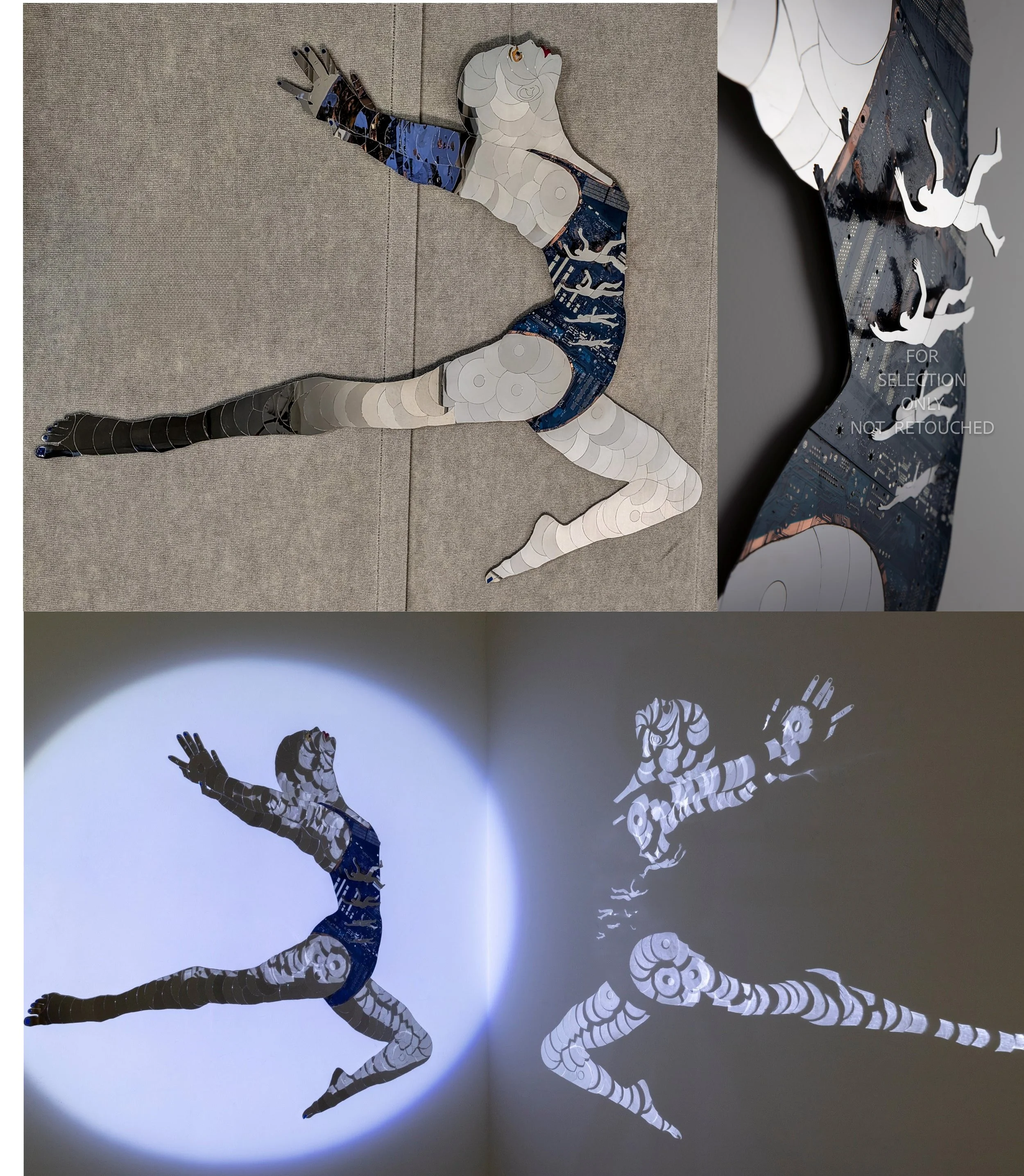 In my Reflections series, I transform upcycled hard drive platters and motherboards into wall sculptures that explore the intricate relationship between our inner and outer selves.